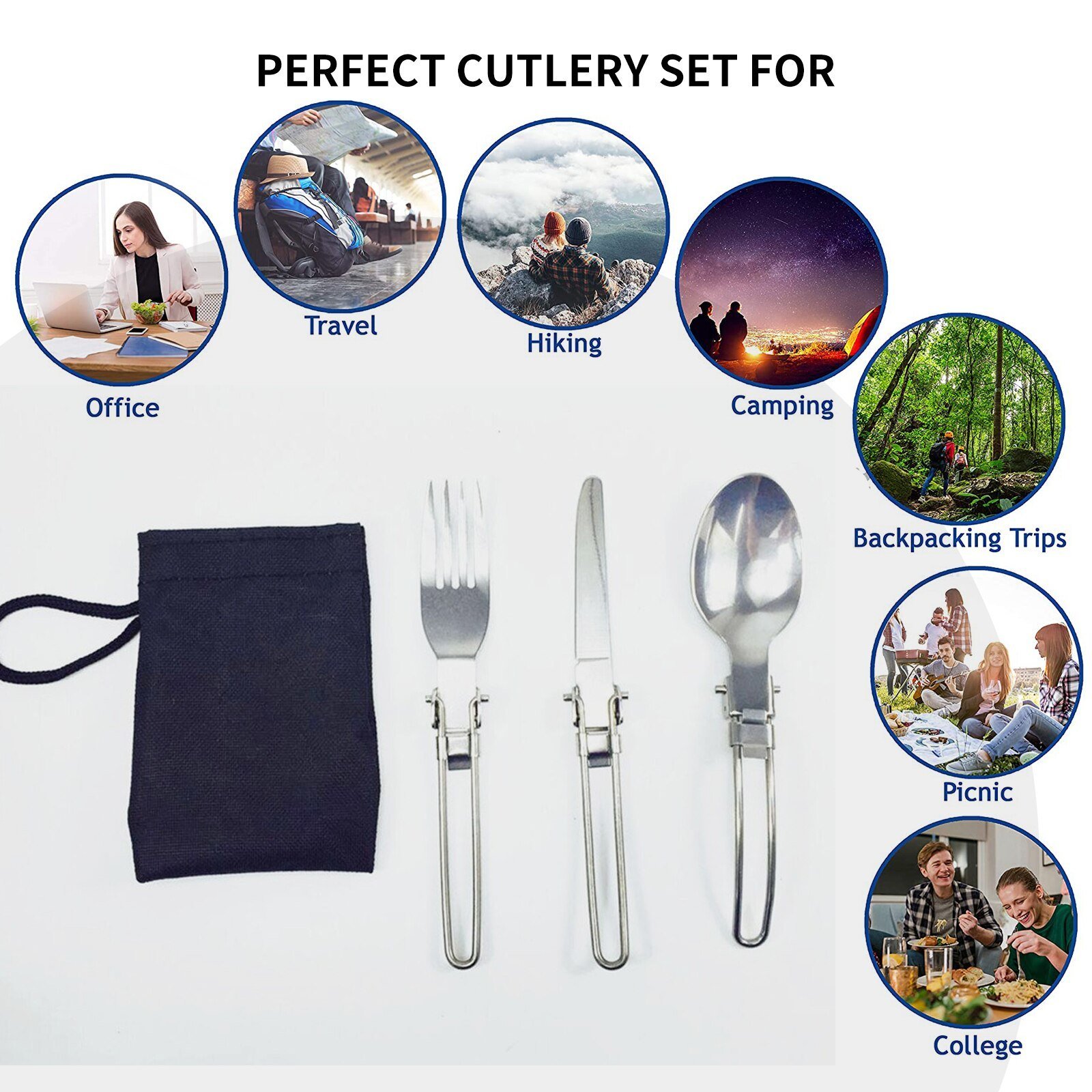 Including : Fork x 1, Fork x1, Knife x 1, Storage bag