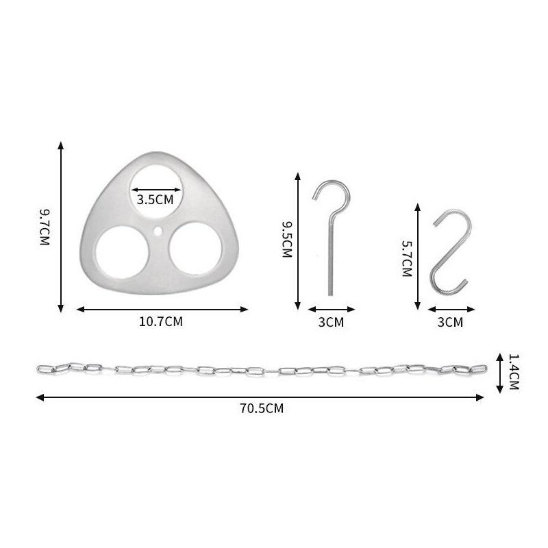 <br>Size: The adjustable chain length is 27.8"/70.5cm. The diameter of the round hole of the camping tripod board is 3.5cm/1.4" * 3.