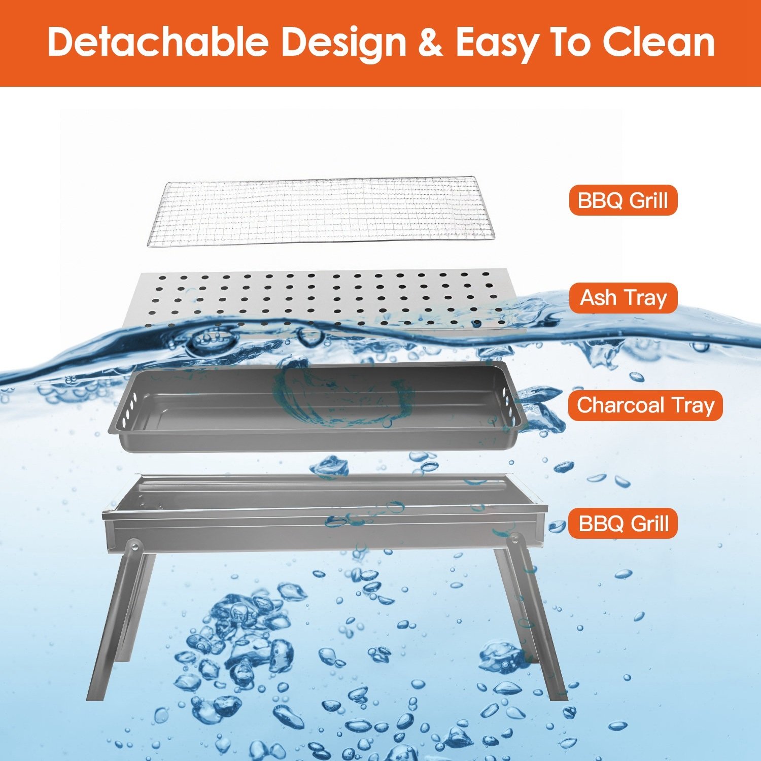 *Easy To Setup*:Not screws needed and easy to set up,just 4 steps and you can start to use. The side tray is designed to place BBQ tools,like seasoning bottles,forks,roasting sticks and so on. Detachable BBQ grill is also simple to wash,leaving no cleaning dead spots.